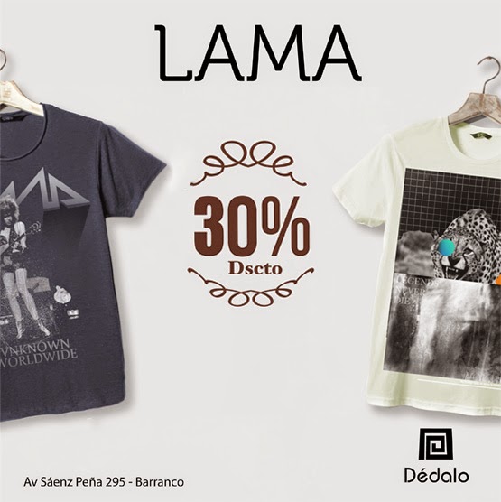 LAMA también nos sorprende con su personalidad única. Polos que comunican, ropa para hombres y mujeres impulsados por el arte. Y la buena noticia es que todo LAMA está con el 30% Dscto.